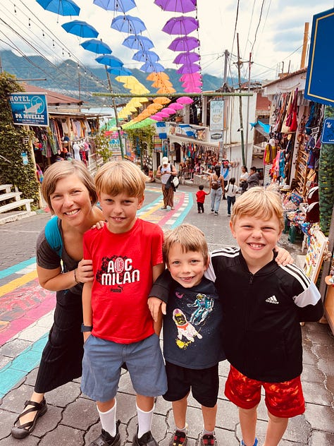 The boys’ favorite activity is taking the boat across the lake, and we’ve visited to Panajachel, San Pedro La Laguna, and San Juan La Laguna. Panajachel had a fantastic nature preserve with kid-friendly zip lines, suspension bridges, and a butterfly pavilion.