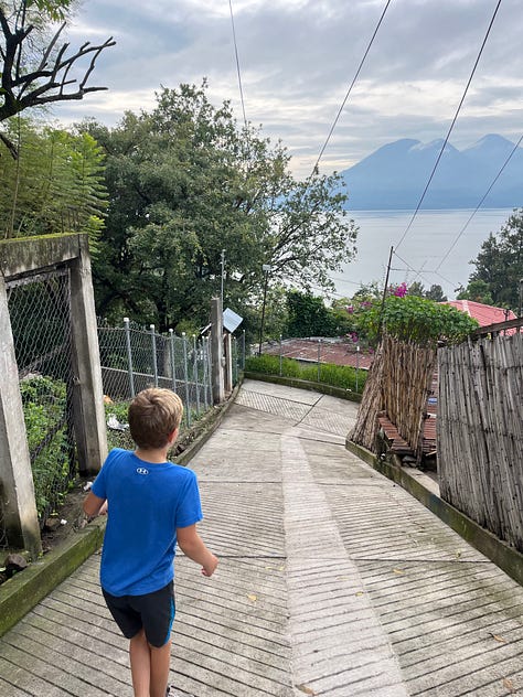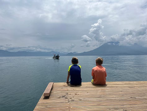 We left the colonial city of Antigua for San Marcos la Laguna on Lake Atitlan. This enormous lake (which, according to one placemat, has the most water of any lake in Latin America and a maximum depth of 1100 feet) has a shoreline dotted with towns. We arrived at one end, in Panajachel, and took the little 30ish passenger boat across to San Marcos. The boys LOVED the boat ride! We easily found our little house and began our two favorite activities: getting the lay of the land and making a house a home.
