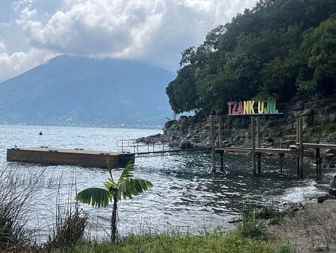 We’ve also discovered the Reserva Natural Cerro Tzankujil, a protected area a 2 minute stroll from our house. The Cerro (or hill) has long been used by indigenous Mayan folks (there are 22 indigenous languages in Guatemala and many people speak a first language other than Spanish. It is common to hear folks speaking in Kaqchikel and Tzʼutujil, two Mayan languages). It also sits along the lake shore and has beautiful swim spots and a 13 meter jumping platform that we are just too old and too young to plummet from.